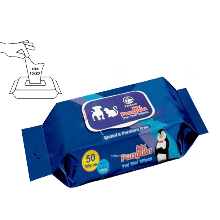 دستمال مرطوب حیوانات خانگی مستر پنگوئن - بسته 50 عددی