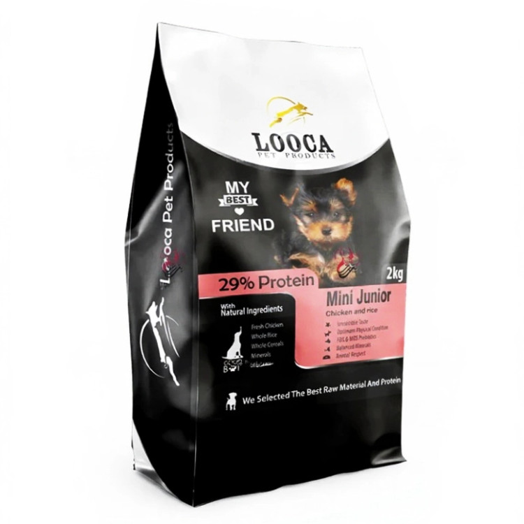 غذای خشک پاپی نژاد کوچک لوکا مدل مینی جونیور، وزن ۲ کیلوگرم، با طعم اصلی مرغ و برنج، مخصوص توله سگهای نژاد کوچک طراحی شده است.